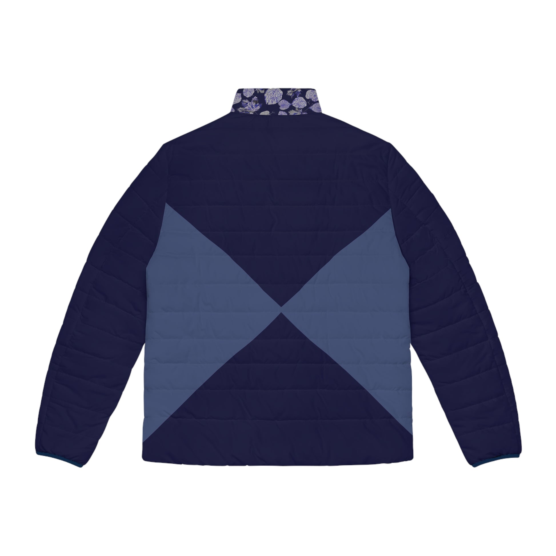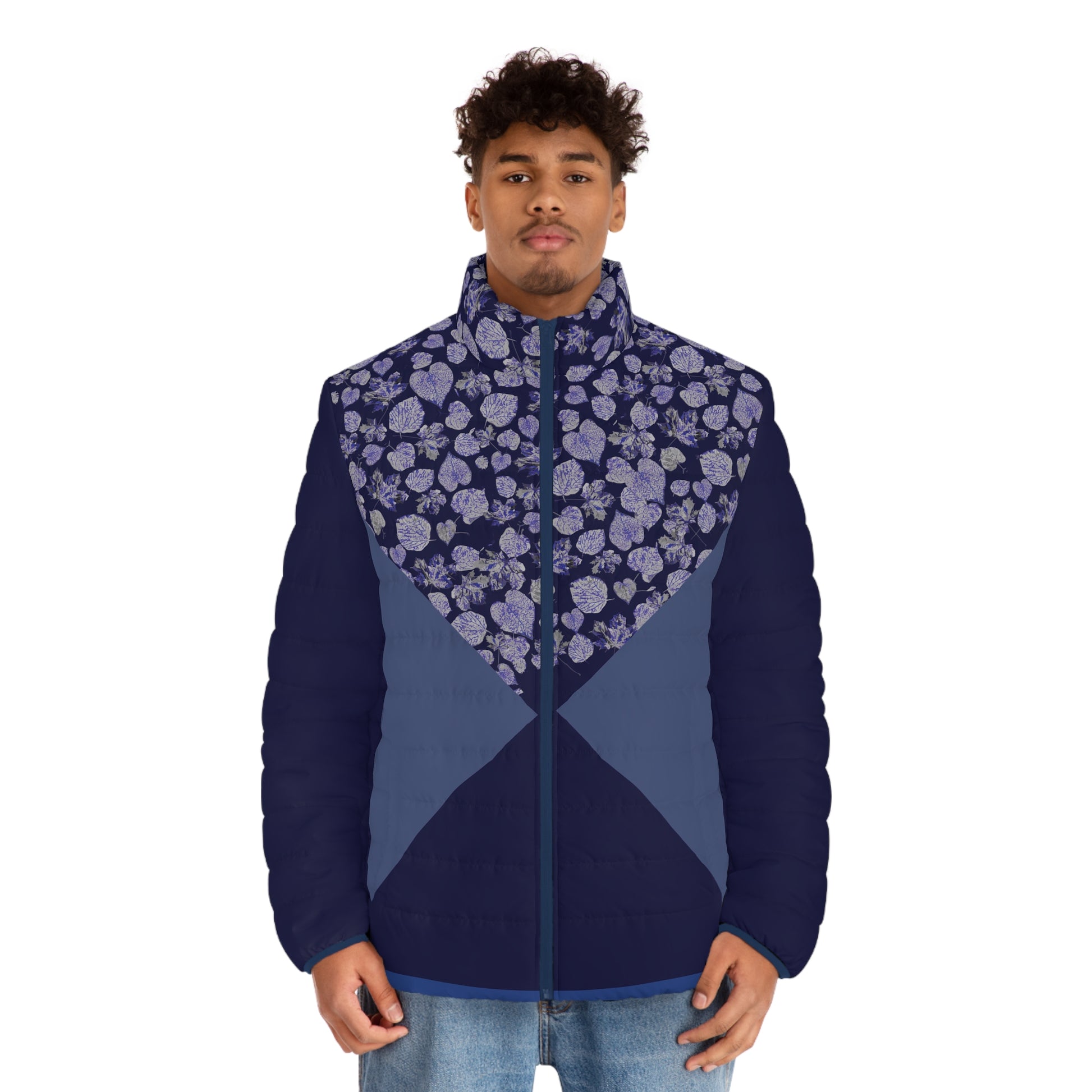 Symmetric Foliage Explosion dark double Blues Puffer Jacket