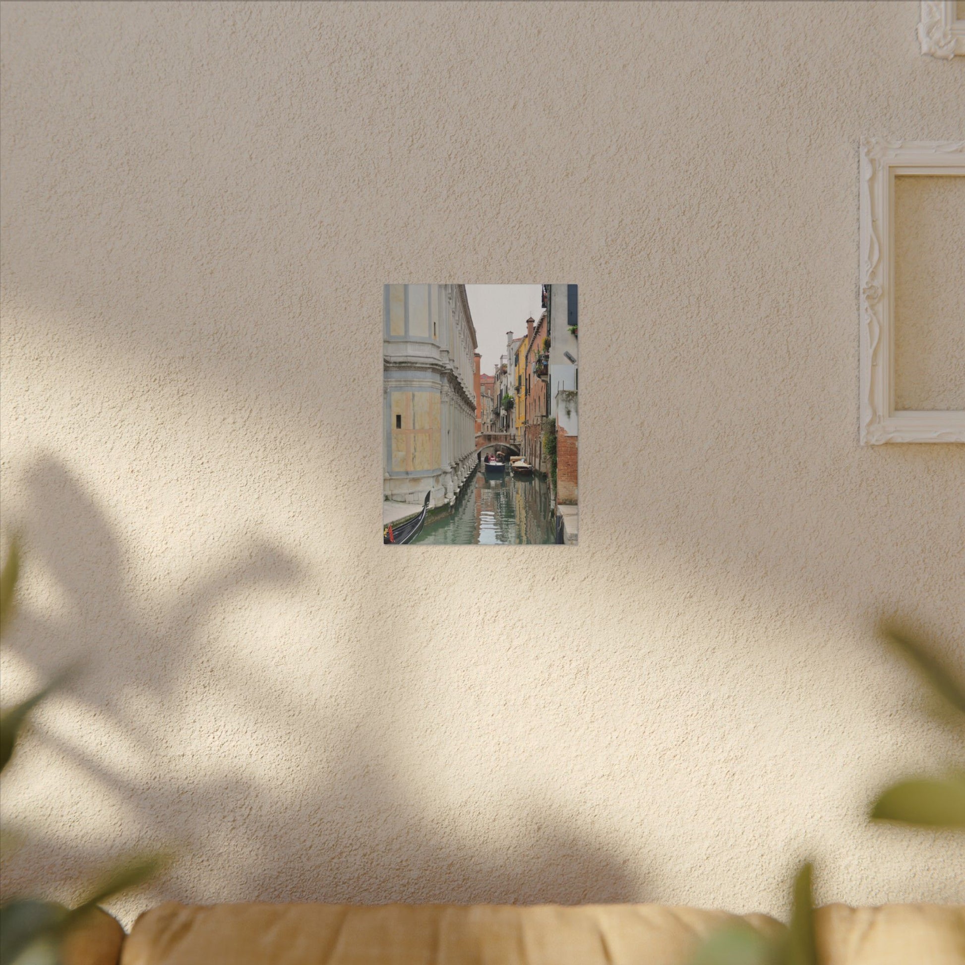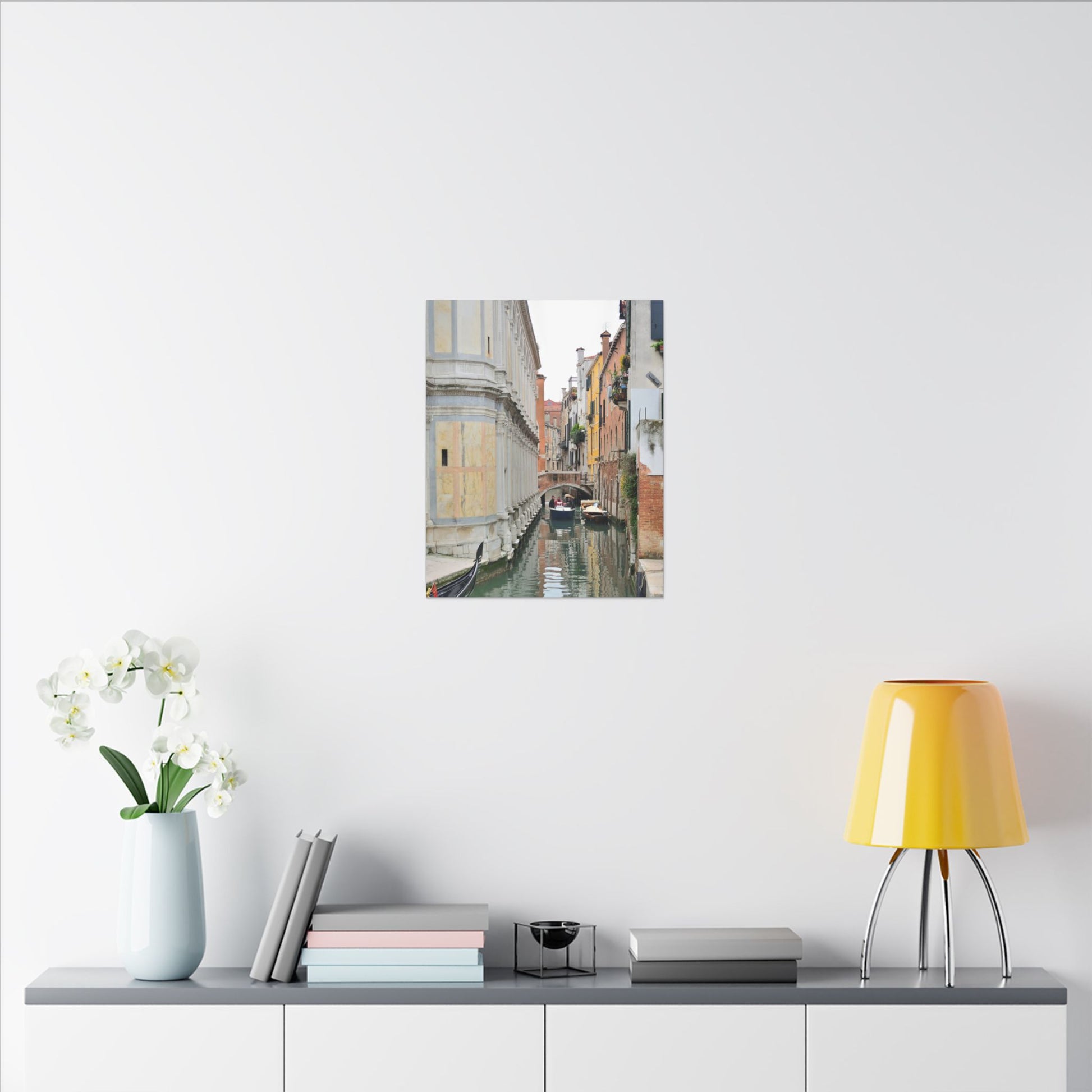 A matte stretched canvas print that brings a quiet Venetian moment into your home. The scene of gondolas gliding through a narrow canal is printed with archival-quality, low-VOC latex inks on a durable cotton–polyester canvas with a special coating that preserves fine detail and rich color. The thin 0.75" profile keeps the piece feeling modern and lightweight on the wall, while the subtle rubber pads on the back protect surfaces and help the print hang square. The timber frame is responsibly sourced radiata pine, so the artwork carries an eco-conscious footprint. Hang it above a small console, in a narrow hallway, or cluster a few sizes together to recreate the intimacy of a canal-side stroll.